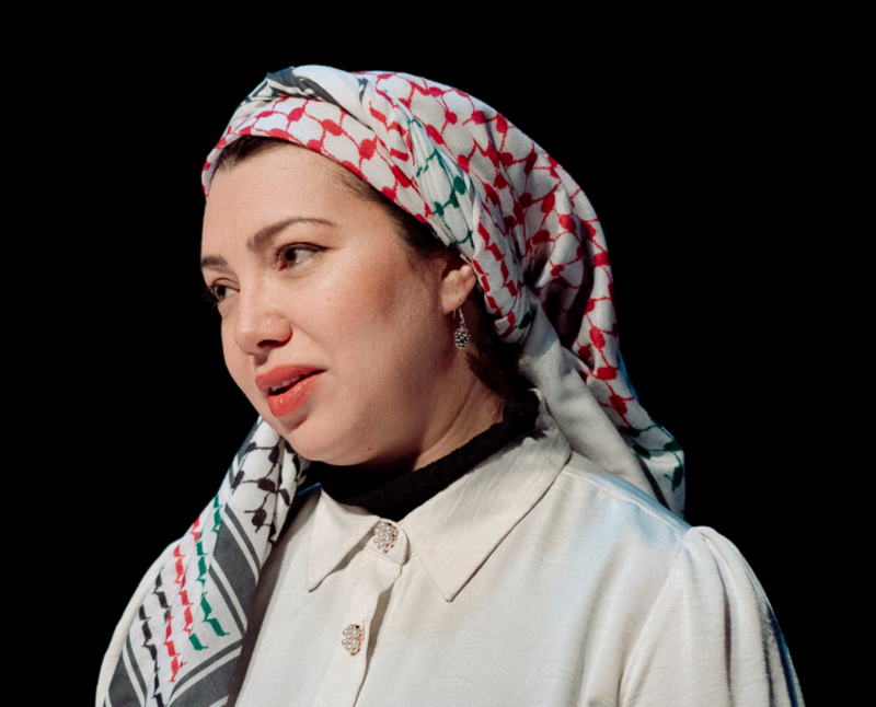 Sur scène, la poètesse gazaouie Hend Jouda lit ses textes en arabe et semble comme suspendue entre la lumière des poèmes et de sa voix, un détachement nourrit d’ironie, et sa présence intense. Alors que Gaza, sa terre, son amour, est dévastée, l’autrice interroge : comment être poétesse en temps de guerre ? – titre d’un poème qu’elle publie sur Facebook en octobre 2023 et qui sera régulièrement repris, partagé et traduit. Entre la douleur et le deuil, son écriture célèbre pourtant aussi la vie. Ses textes créent un pont impossible entre la joie et la mort, les bonheurs quotidiens essentiels et dérisoires, et la force de continuer à lutter.